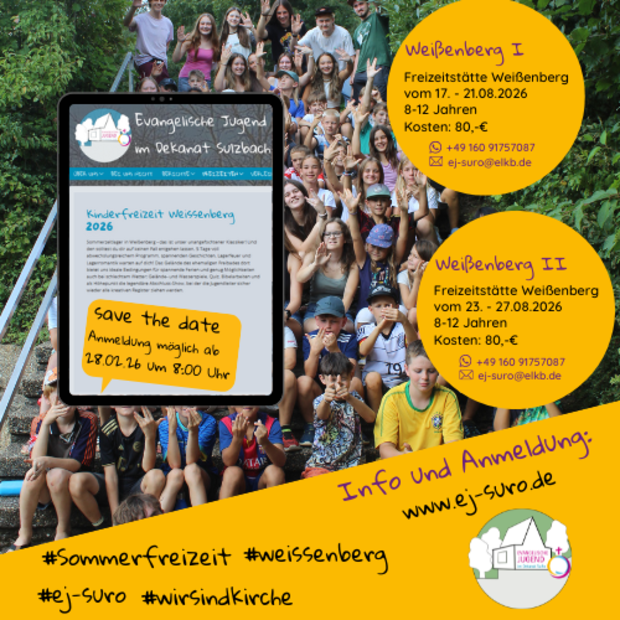 Bei der Evangelischen Jugend sind sie da in guten Händen. Zuständig für unsere Kinderzeltlager sind unsere Diakonin Sophia Lulla für Weissenberg 1, sowie die erfahrenen Ehrenamtlichen Susanna Schatz und Julian Donschachner für Weissenberg 2. Dabei sind außerdem ein großes Team von Jugendleitern. Sie alle werden Sie bei der Ankunft in Weißenberg willkommen heißen und für alle klärend zur Verfügung stehen.